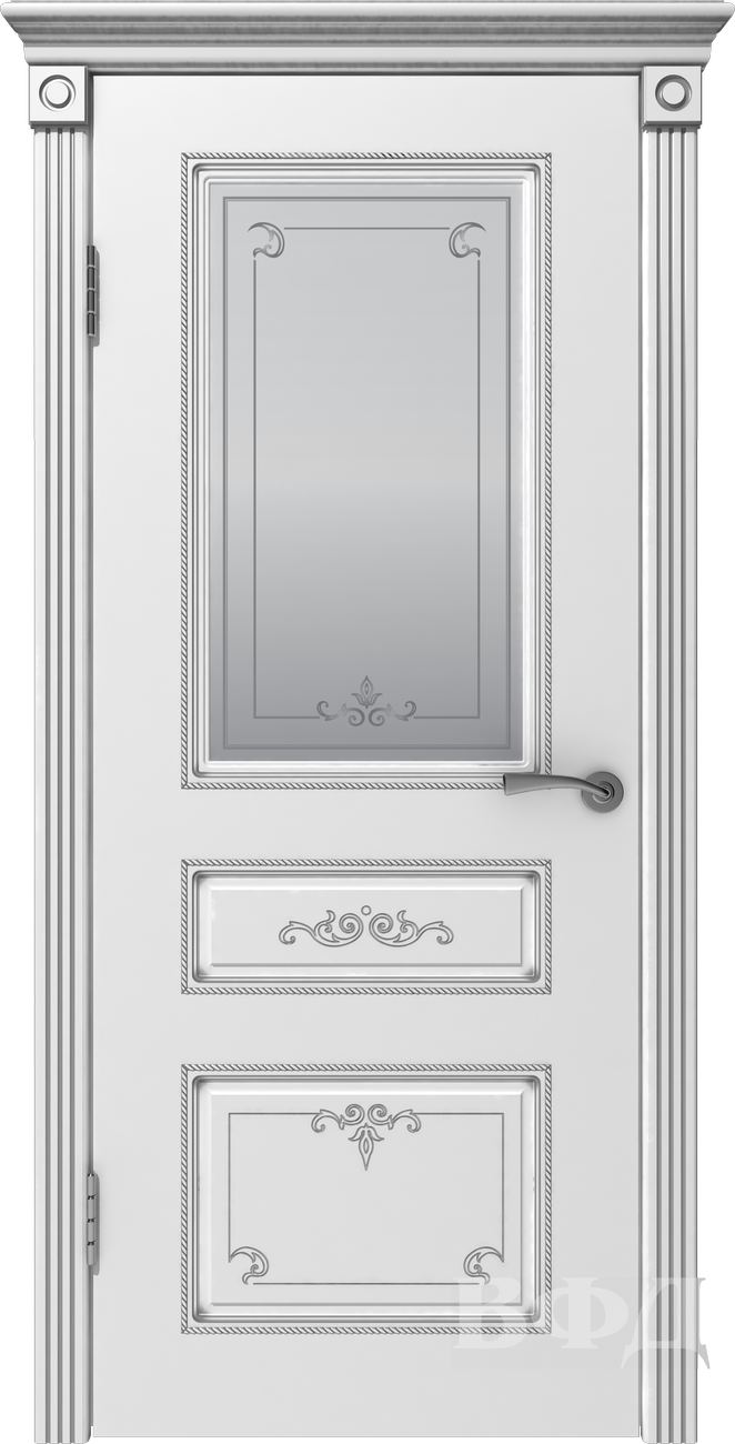 Межкомнатная дверь Вивьен Белая эмаль стекло патина серебро